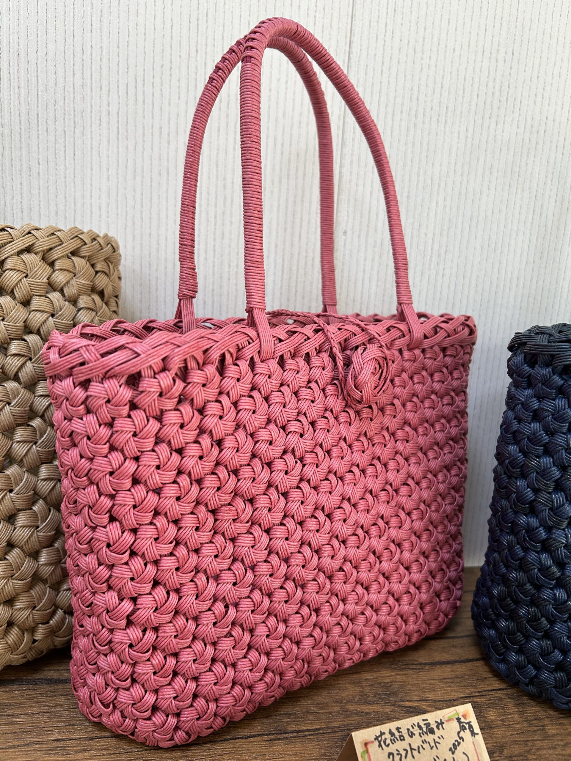 花結び編みのカゴバッグコンスタントに製作中